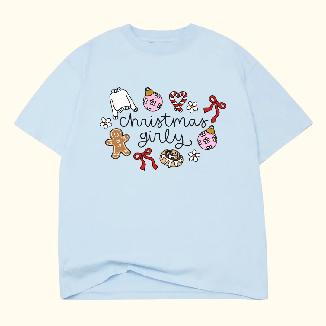A soft + cozy oversized tee for the girls who love Christmas. This design is sweet, simple, and festive without doing too much — perfect for holiday photos, shopping days, or lounging with hot cocoa. Printed on a pink/blue oversized tee and available in sizes S–XL. Cute, comfy, and perfectly girly for the season.