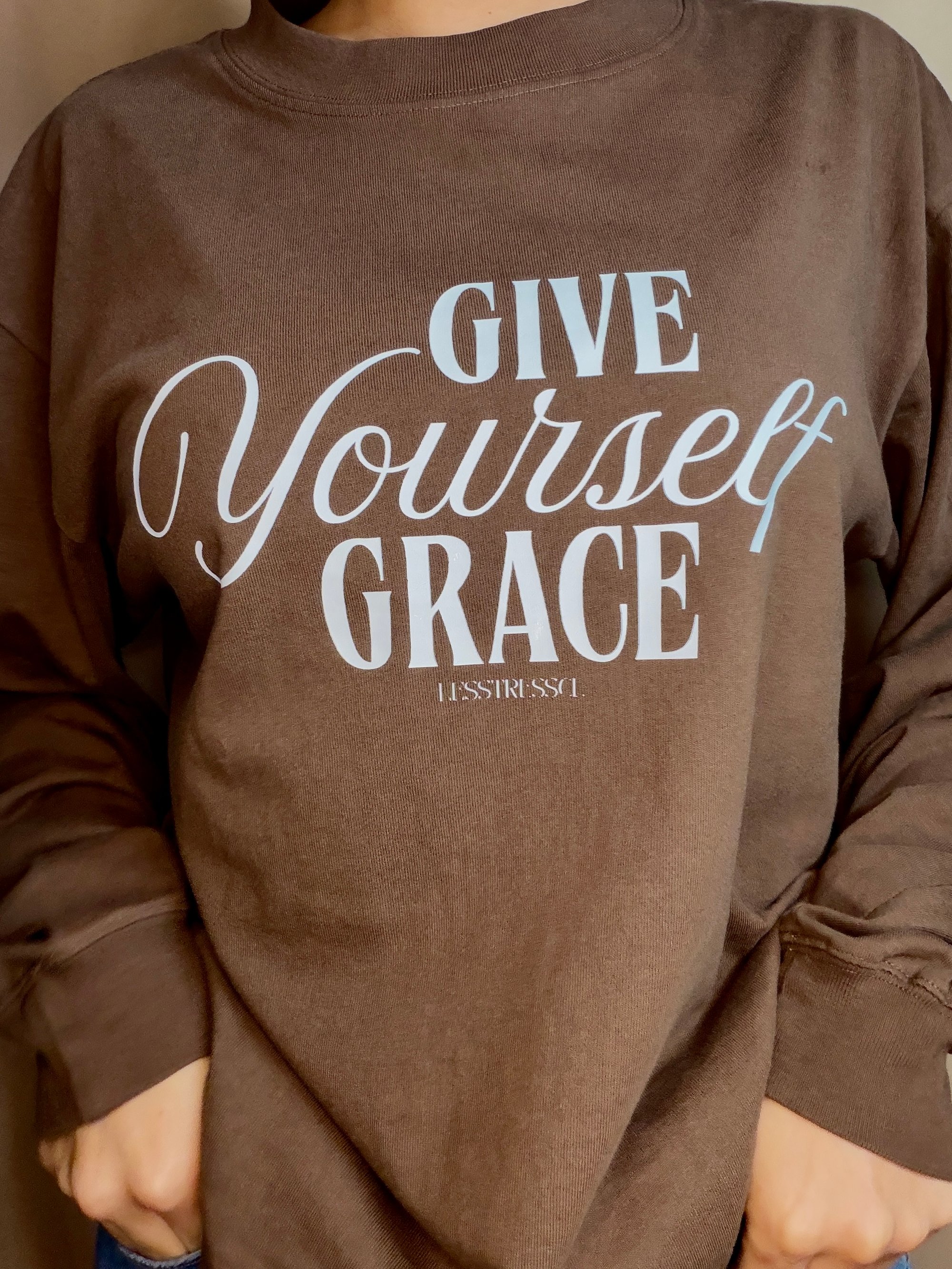 Wrap yourself in comfort with our “Give Yourself Grace” long sleeve. Printed in a clean white design on a warm brown tee, this piece is all about softness — in the fabric and the message. Lightweight, cozy, and perfect for everyday wear when you need an easy, gentle reminder to slow down. Available in sizes S–XL.