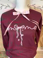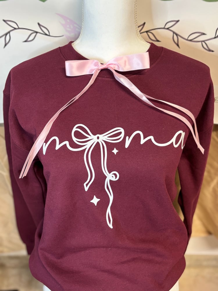 Stay cozy and cute in this maroon Mama crewneck featuring a dainty bow on the “a” for the perfect girly touch. Soft, comfy, and perfect for everyday wear or gifting the mama in your life 💌