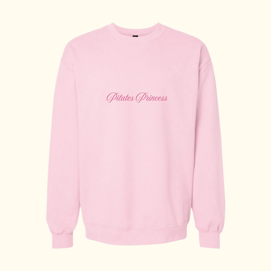 A cozy light pink sweatshirt featuring a bright pink “Pilates Princess” cursive design — the perfect blend of girly and sporty. Soft, warm, and ideal for cold-weather workouts or comfy everyday outfits.